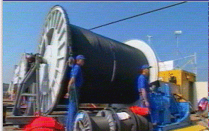 La vidéo suivante montre comment l'on fait glisser le câble de fibres dans un tube en injectant par soufflage des micro-billes de téflon qui permettent le glissement presque sans frottement. Notez avec quelle aisance les deux employés déroulent la bobine!